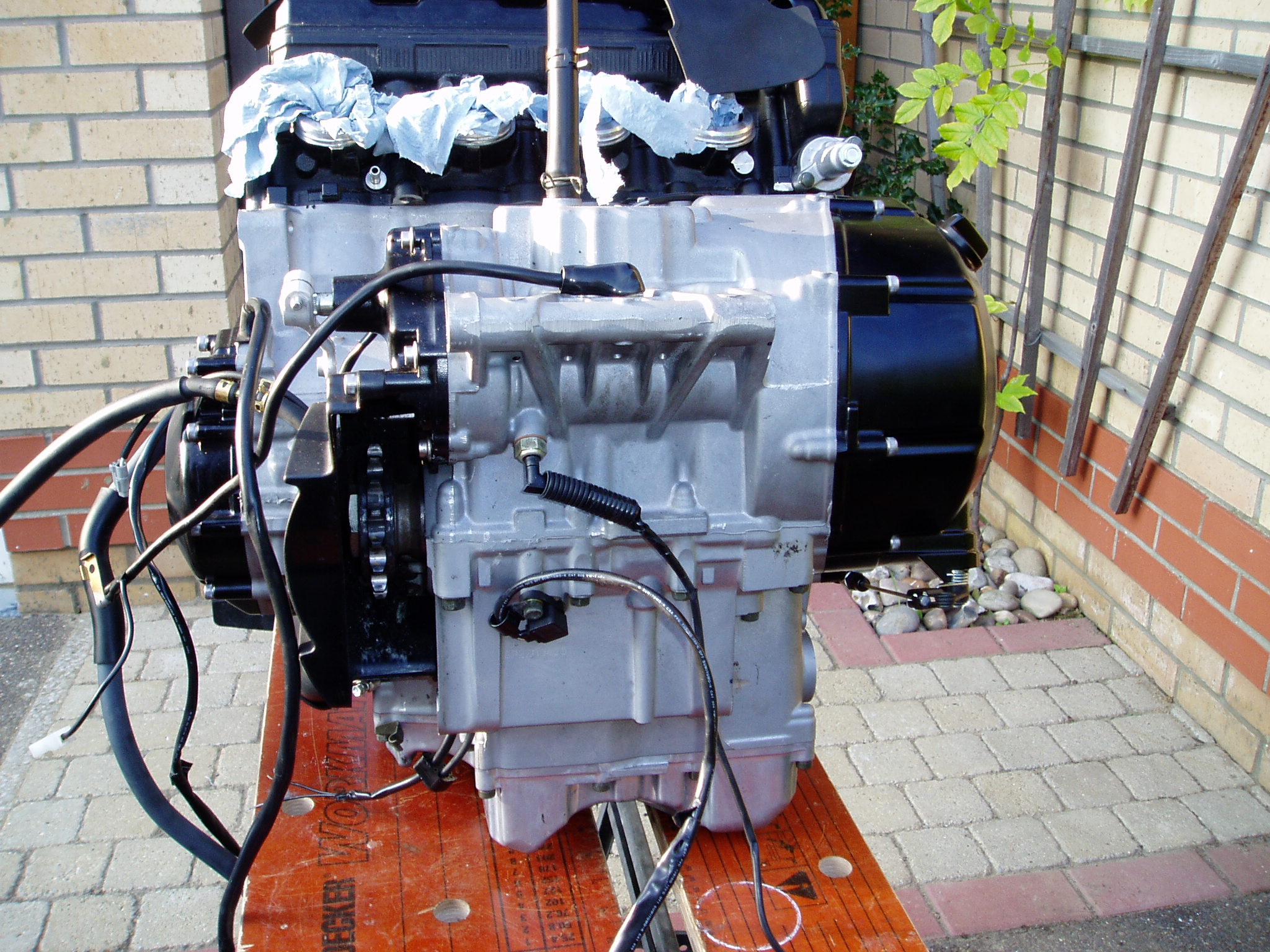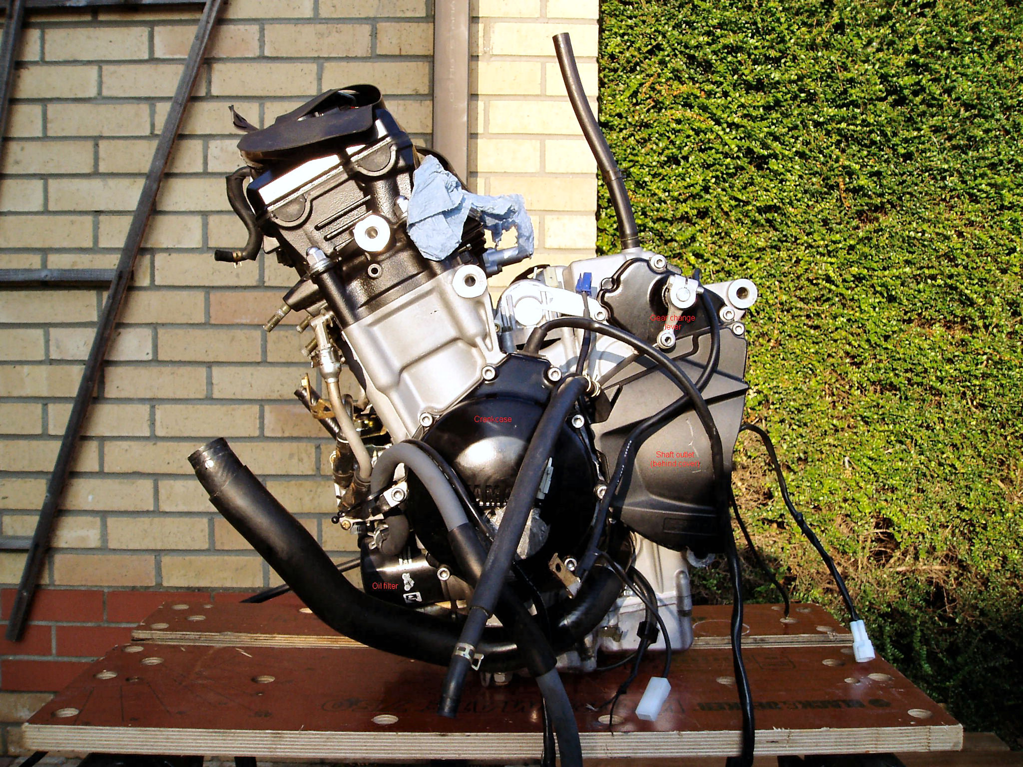 The back of the engine as it would be in the car. This is the right of the engine in the bike.