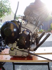The right of the engine as it would be in the car. This is the back of the engine in the bike.