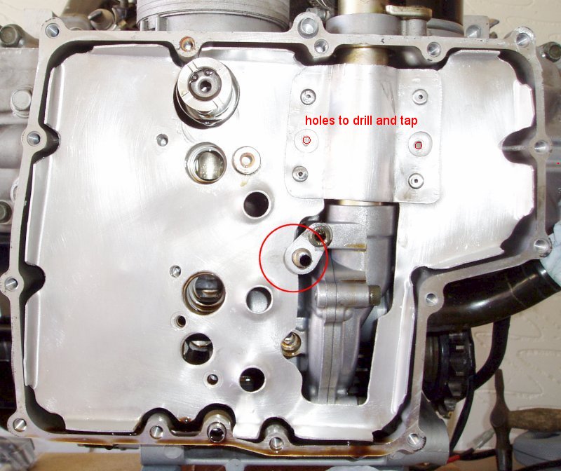Using plastic sheets and small clamps, I protected the surrounding area from swarf and started by drilling two 1mm pilot holes into the casing for the two bolts required to hold the sump in place. This was followed by a 2mm drill bit.