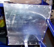 Whilst the panels fitted so far have had a fairly clean finish, there are obviously marks on the aluminium from the cutting process and from storage and transportation. The floor is going to be covered, so this is not an issue. The passenger footwell is out of site. The other panels will be visible though and I'm now planning to have these powder coated in black to provide a cleaner and tidier finish. I've got to get a few bits powder coated soon so I'm going to also send the rear bulkhead panels and the tunnel rear side panels to see how they come out.