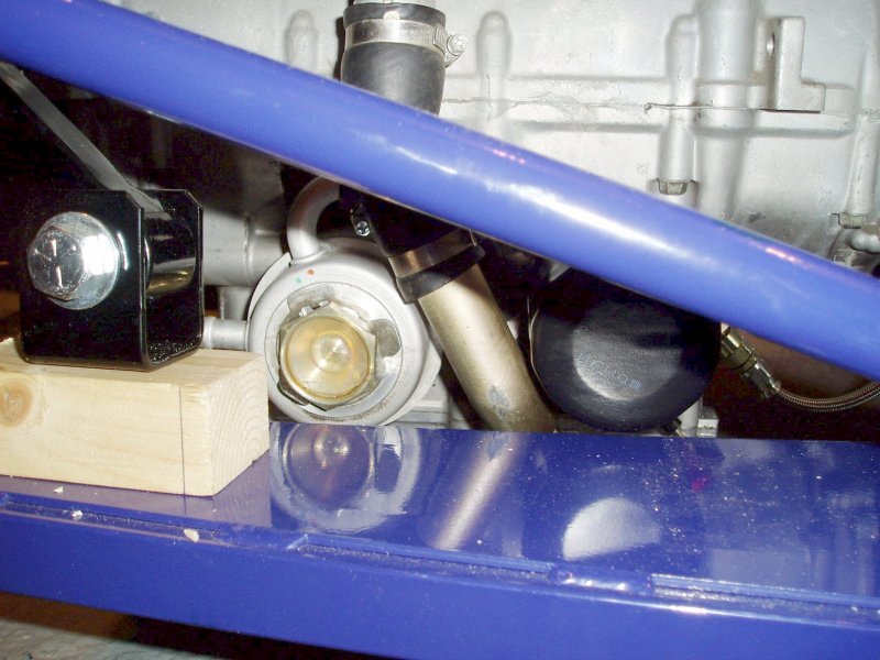 A friend building an R1 Striker has also come across the issue of engine installation/location and the take-off plate for the oil temperature and pressure sensors, causing the oil filter to foul the chassis. The biggest challenge I had in getting the engine to sit nicely in the car is that of getting the oil filter to not foul the chassis rails. In retrospect, I should have gone for a solution using a remote oil filter. Since I've had to add a take-off plate for the oil temperature and pressure sensors, these solutions could had been combined into one take-off plate and one remote oil filter plate and things would have been so much easier. The engine position would be better and access to the oil filter would be easier. If you learn one thing from this web site about installing an R1 engine in a Fury, then let it be this.