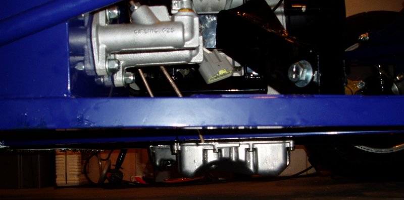 fitted his engine at an angle but it was lower and more central than I can achieve (because my oil filter). He also fitted his engine leaning backwards slightly so that the higher rear ride height made the engine sit level. I'm not sure about this as it introduces another angle to the propshaft and the car will be accelerating under power, causing oil to go to the back of the engine anyway.