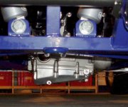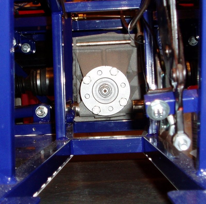 | This is the resulting view down the transmission tunnel, which looks pretty good. The propshaft will not hit anything and the propshaft angle is fairly small. |