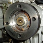 With the sprocket off, I then trial fitted the sprocket adaptor. This provides a flat surface, to which the propshaft will bolt. This came from the The Kit Car Workshop The adaptor is about 2-3mm too deep to allow the locking washer to be fitted onto the splined section of the shaft. I'm going to have to get the raised, central part of the adaptor machined down on a lathe, to allow the locking washer to fit on the splines as intended. |