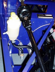 | I also remounted the brake fluid reservoir on the other side of the steering column so that it isn't in the way of the engine mounts. |