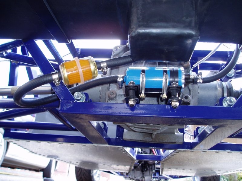 Finished off the fuel system. I need to test this for leaks, so I've put a drip tray under the fuel tank/pump and put a gallon of fuel in the tank. I will connect the two fuel pipes together in the engine bay and run the pump to check fuel gets pumped up to the engine bay and comes back down the return line OK. This last bit will be done outside, just to be on the safe side.
