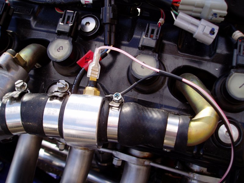Wired up the oil temperature sensor. I had to use another 10mm ring but I also needed a couple of 10mm washers, as the sensor would not go far enough into the adaptor to clamp the earth tab.