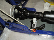 In the end I made a bracket (to be powder coated and riveted to the chassis), which sits out of the way at the diff end of the propshaft. The sensor is 12mm in diameter and has two nylon nuts on its threaded body to provide adjustment.