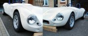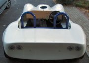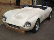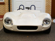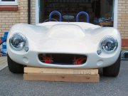 Low front view. I need to cut a bit of fibreglass away around the hinges before the bonnet will lift cleanly. I can then sort of the front wiring connector and add the front grill.