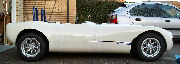 Front left view. Just behind the front wheel you can see that the side pod comes out slightly further than the bonnet. This will be corrected by the bonnet fixings.