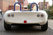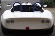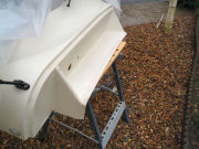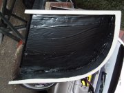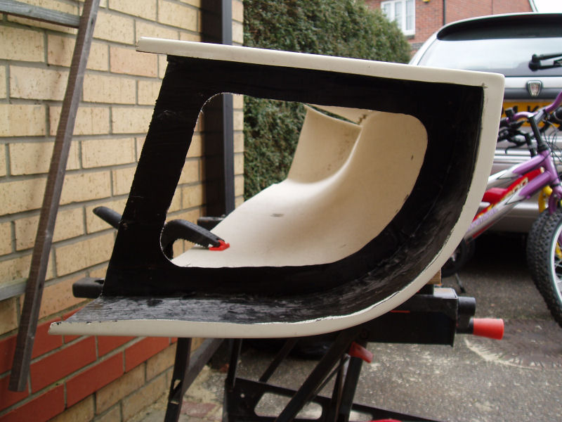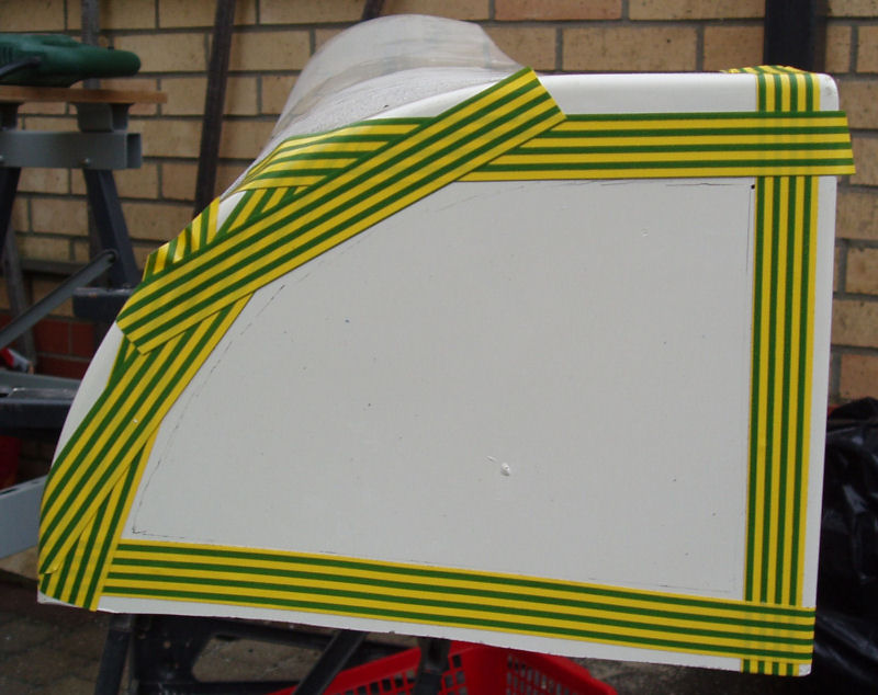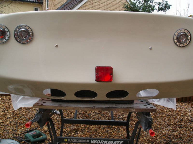 And fitted it to the car. I think this idea has worked quite well. The panel breaks up the expanse of white fibreglass a bit.
