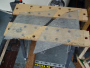 Using my MDF templates, I made up some flat pieces of fibreglass sheet by setting it on a piece of glass. Once set these can then be bonded in place using more matting and resin.