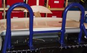 Picked up some more seat foam and vinyl seat covering. My local Fabric Warehouse no longer sells it in black, so my new seats are now both dark blue. Also picked up some aluminium sheet for my rear access panel and some other bits to fabricate a few more brackets. Not so good is that fact that my local and friendly powder coater has gone out of business