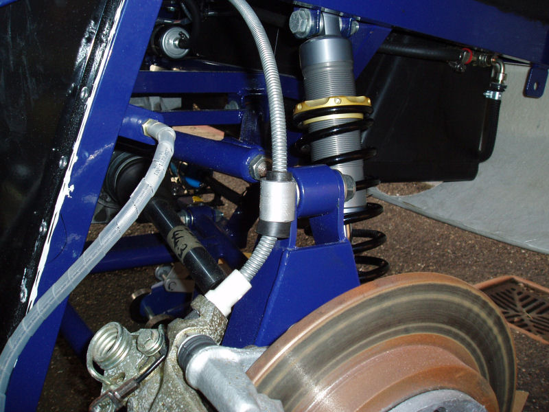 Because of the location of the calipers and suspension parts, the handbrake cables rest on the wishbones. Not only is this noisy but it is also an SVA failure point. I'd previously looked at fabricating brackets to solve this and had also fixed one to the chassis but, as the calipers move relative to the chassis, the brackets need to be fixed to the upright.