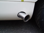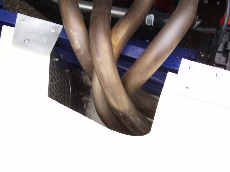 I need to cut a hole in the front face of the left sidepod, ensure a good airflow though it. The exhaust gets very hot otherwise and could set fire to the car.
