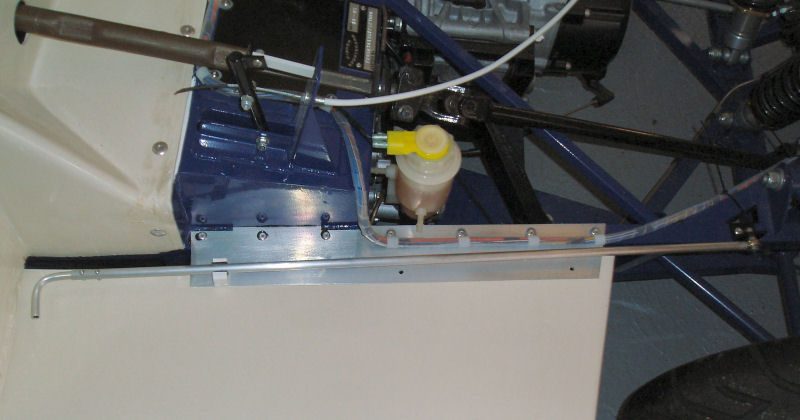 Whilst the main tub was off, I took the opportunity to use the improved access and locked the brake bias bar in place for SVA test. This is achieved by drilling a hole through a nut and the bar at the extreme ends. Washers are then used to fill the gap. The means that the hole drilled in the bias bar is far away from the bit that gets stressed. I've temporarily stuck rivets through the holes, to be replaced by split pins.