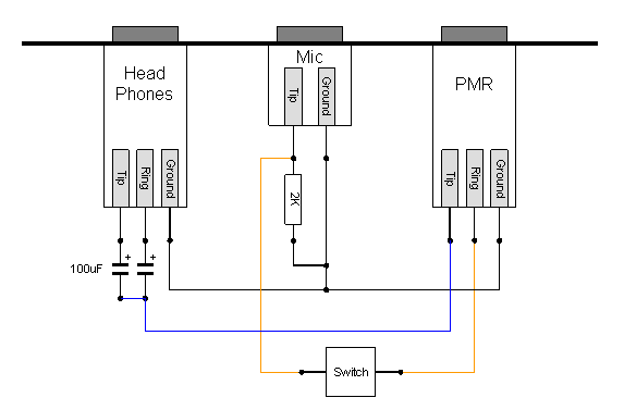 It took me ages to find the information to wire up a PMR radio but I eventually located it on the Internet. My Motorola T5522 radios are wired up in the same way as the Oregon Scientific TP329 radio. The second challenge was to find a 2.5mm stereo plug to go into the radio. Motorola use a non-standard one which is 13mm long (2mm longer than normal) and a standard one bought from somewhere like Maplin will not work. In the end, I found one attached to another old headset, which I used. If you find a source of these plugs, do let me know please.