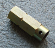 The outer end sits over the narrower, threaded end of the column so I've got a brass bush machined to provide a snug fit. This is held in place by the circlip on the release mechanism. It fits inside the hexagonal boss (3/4") and over the column threads (14mm). It is 25mm long.