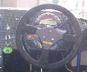 I'm replacing the rather large Sierra steering wheel with a smaller (290mm diameter), quick release Momo wheel. The hexagonal boss was a bit too long so I've machined 5mm off of the inside face to get it closer to the paddle shift mechanism. I've also drilled a 6mm hole through it and the steering column to stop it rotating. I'll also weld it in place for added security.