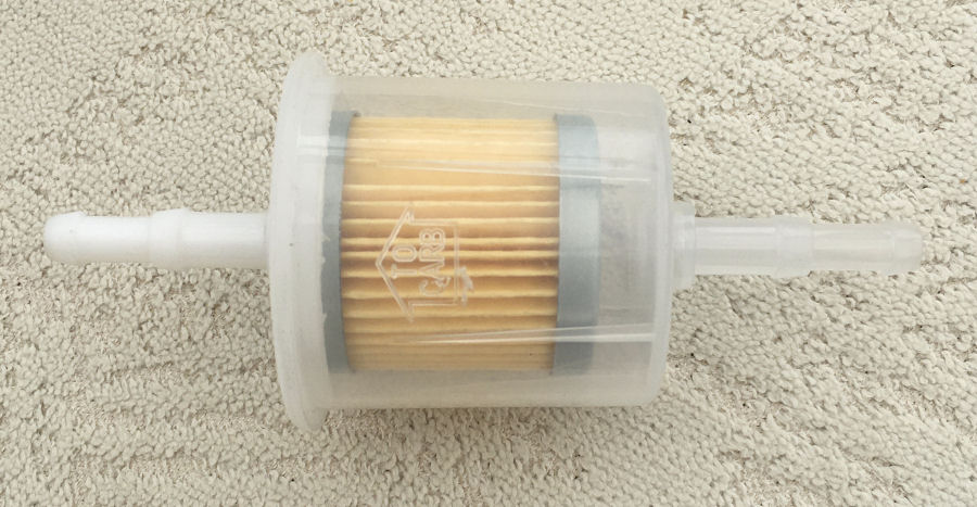 The pre-pump filter also arrived. I'm using this to catch any crud that might come out of the fuel tank before it gets to the fuel pump. This filter is 56mm in diameter.
